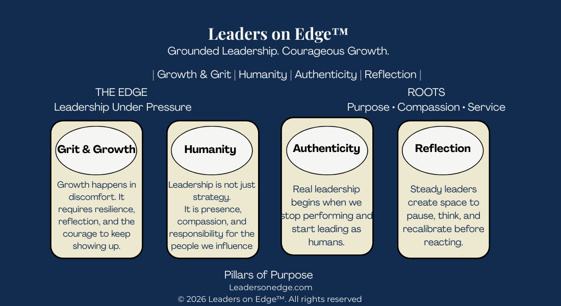 Together, these pillars form the foundation of Leaders on Edge — a space that honors authenticity, humanity, and growth.